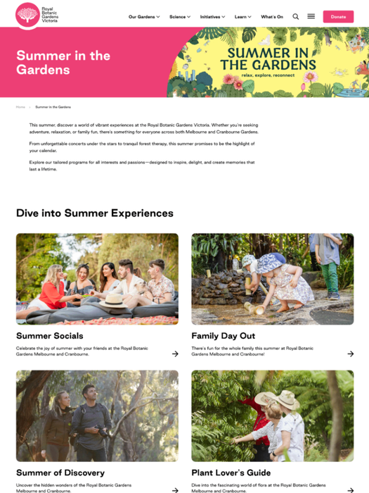 Delivered an integrated, multi-channel campaign positioning Melbourne and Cranbourne Gardens as premier summer destinations. Work spanned strategy, creative direction, social media, influencer collaborations, and experiential activations.